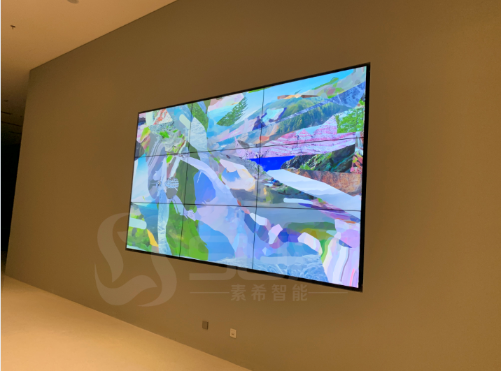 經過上海素希智能科技有限公司項目組實地看完客戶現場后,根據客戶需求以及現場實際情況和客戶預算等情況,最后該項目采用的是素希三星55寸1.7mm拼縫3*3拼接屏,該項目應用的是液壓前維護支架(方便后期維護),該項目主要是宣傳畫廊的藝術品。